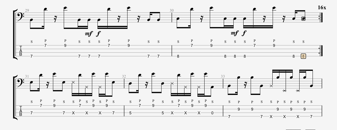 (Traste 17 cuerdas 2 y 4, Traste 18 cuerda 1)